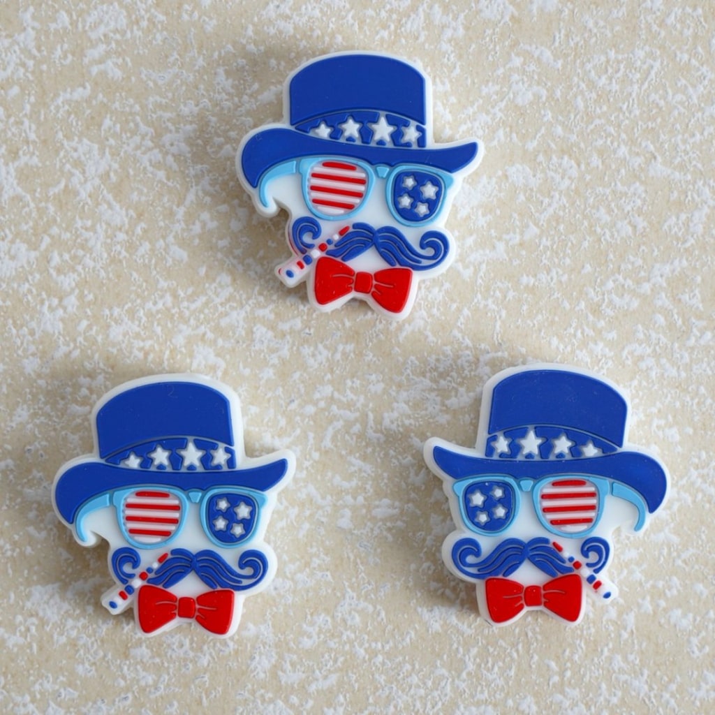 Uncle Sam with USA America Flag Design Hat Glasses Red Bow Patriotism Silicone Focal Beads