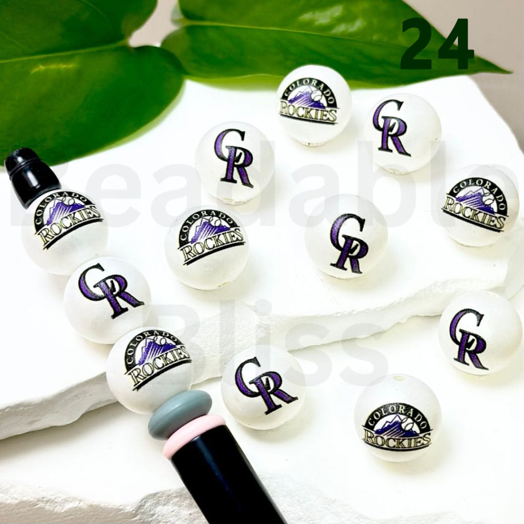 USA America Baseball Team Colorado Rocki Sports Frosted Matt White Round Acrylic Beads, 16MM, Random Mix