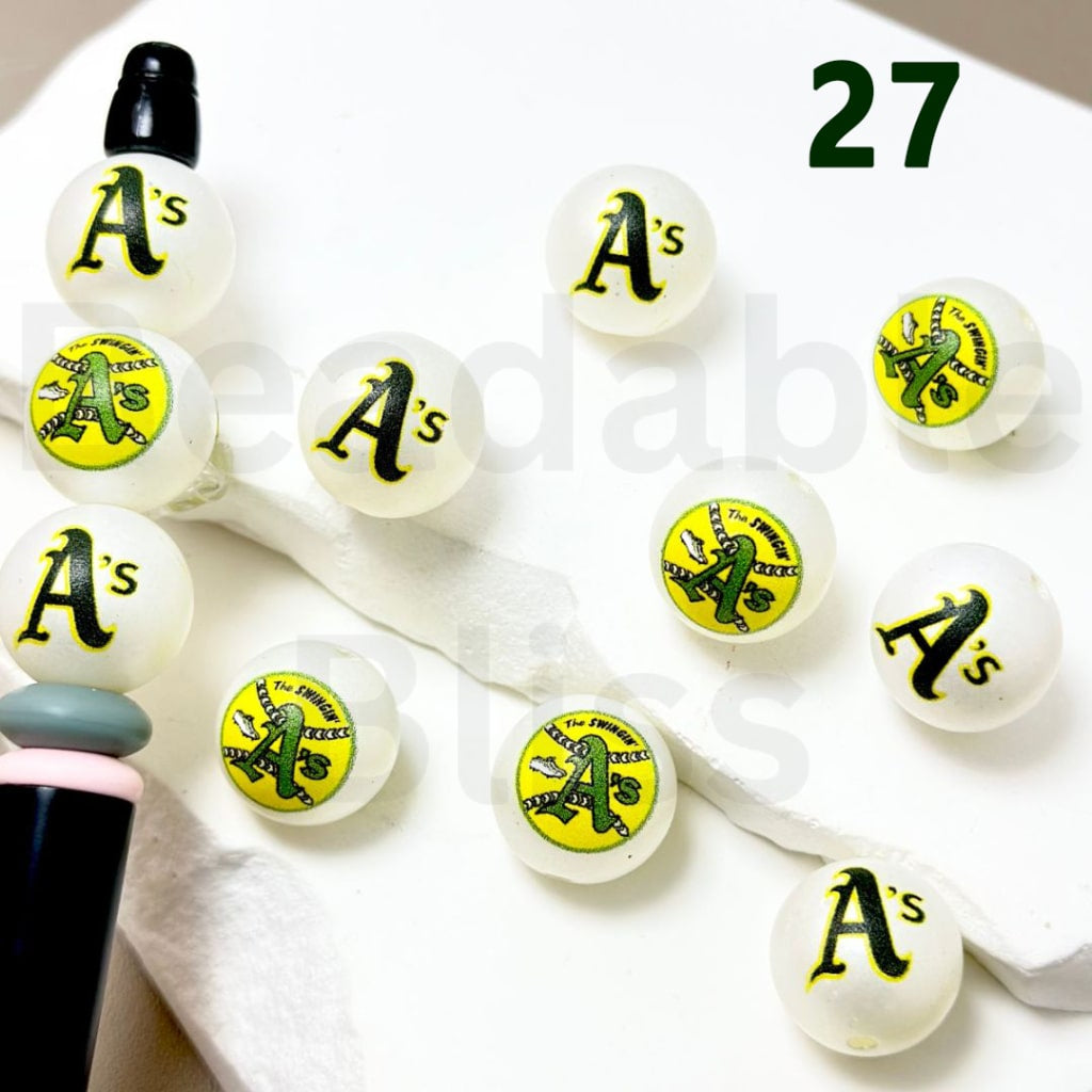 USA America Baseball Team Oakland Athleti Sports Frosted Matt White Round Acrylic Beads, 16MM, Random Mix