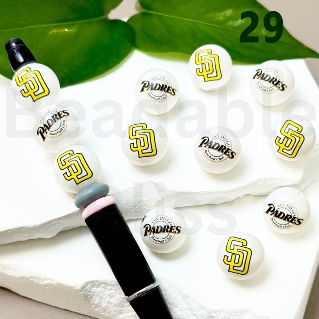 USA America Baseball Team San Diego Padr Sports Frosted Matt White Round Acrylic Beads, 16MM, Random Mix
