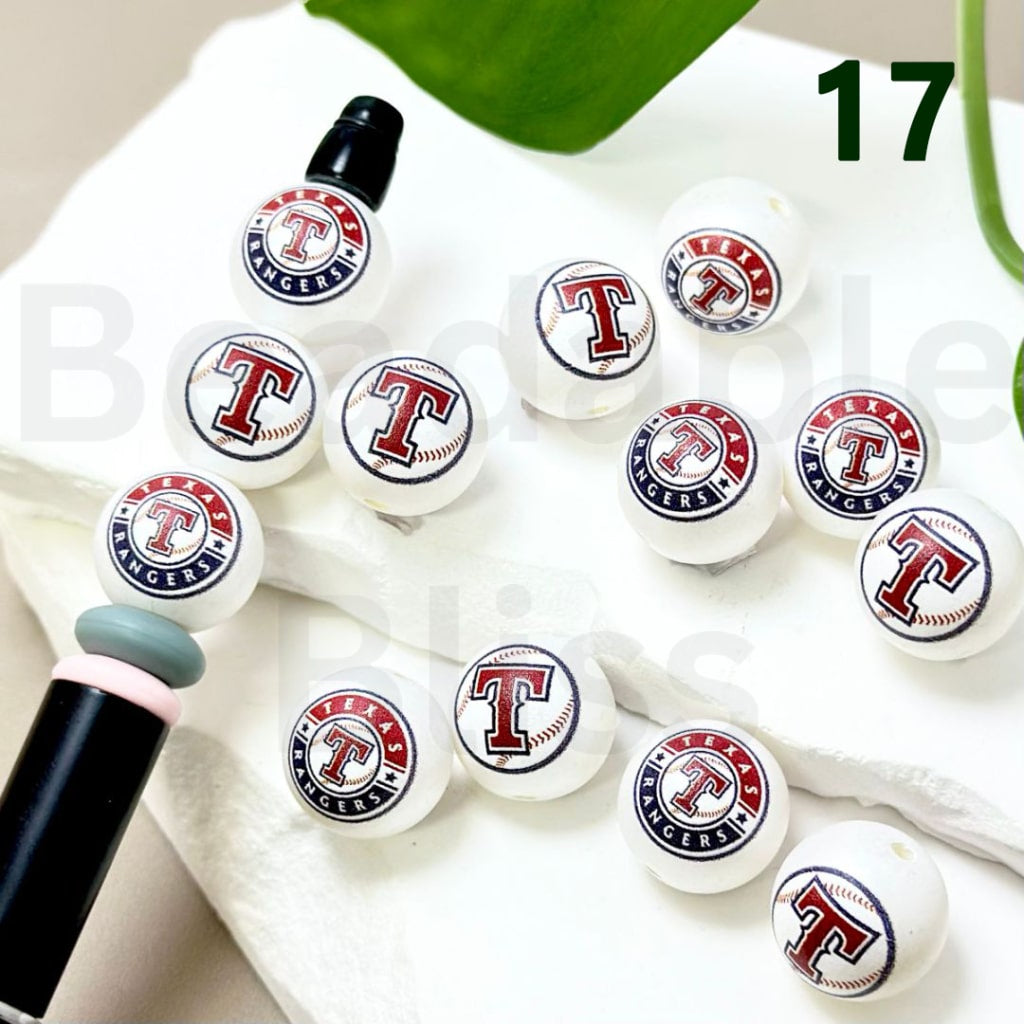 USA America Baseball Team Texas Range Sports Frosted Matt White Round Acrylic Beads, 16MM, Random Mix