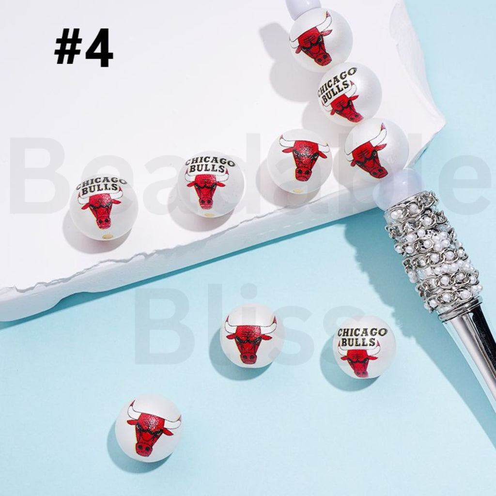 USA America Basketball Teams Chicago Bul NB Sports Frosted Matt White Round Acrylic Beads, Random Mix, 16MM