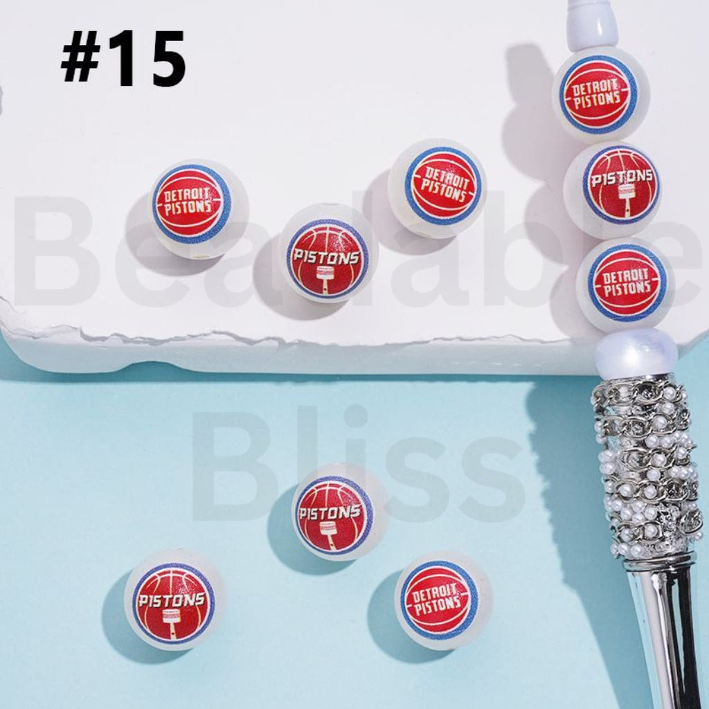 USA America Basketball Teams Detroit Pisto NB Sports Frosted Matt White Round Acrylic Beads, Random Mix, 16MM