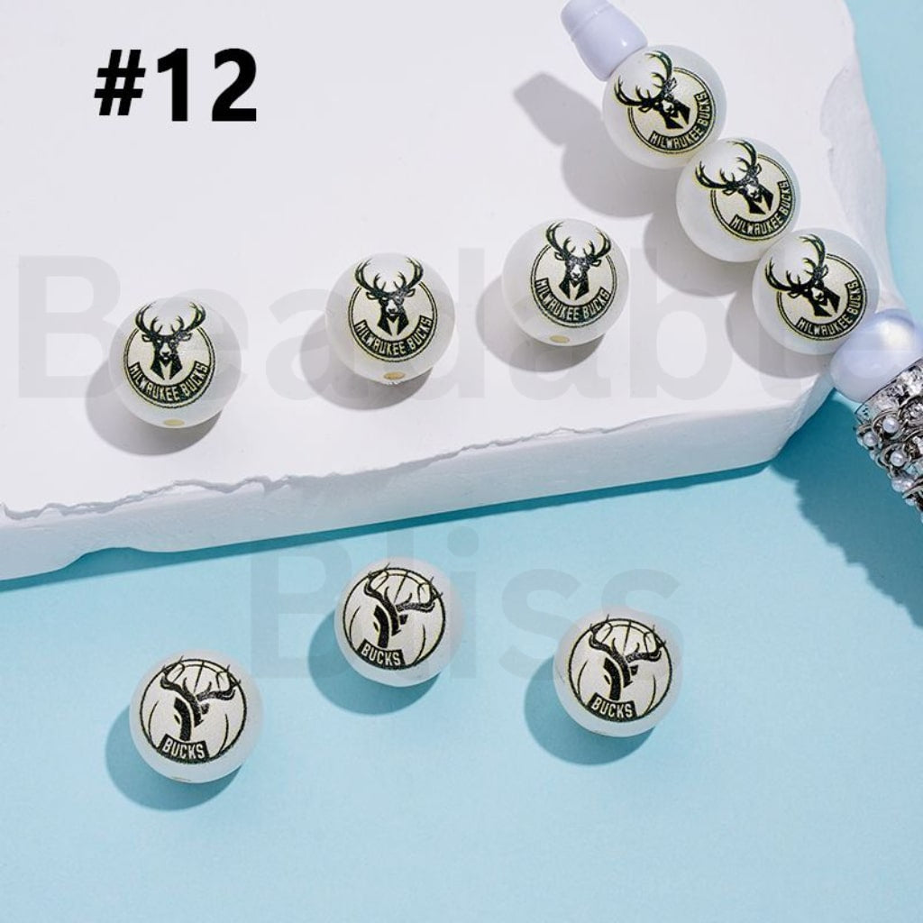 USA America Basketball Teams Milwaukee Buc NB Sports Frosted Matt White Round Acrylic Beads, Random Mix, 16MM