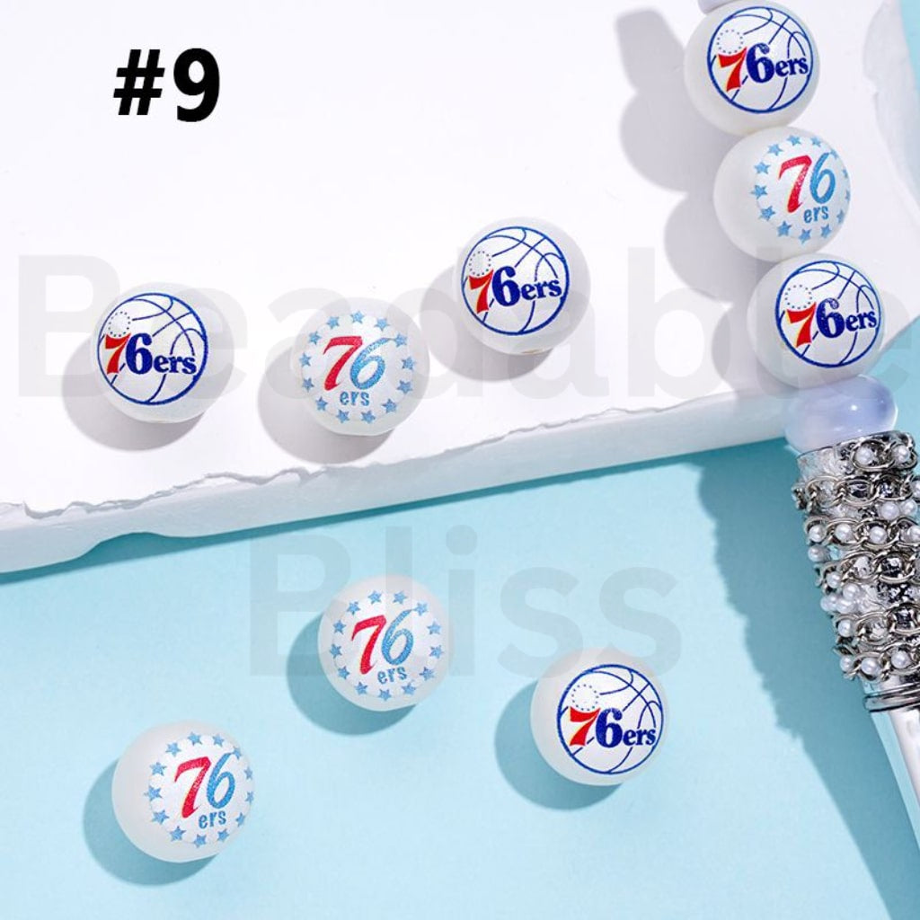 USA America Basketball Teams Philadelphia 76e NB Sports Frosted Matt White Round Acrylic Beads, Random Mix, 16MM