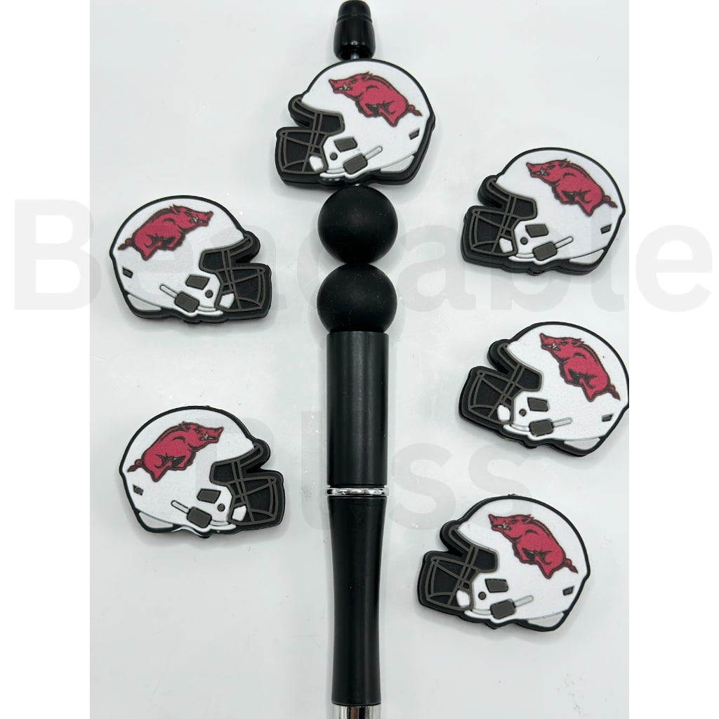 USA America College University Football Teams Arkansas Razorbac Helmet Silicone Focal Beads, Please Read the Description