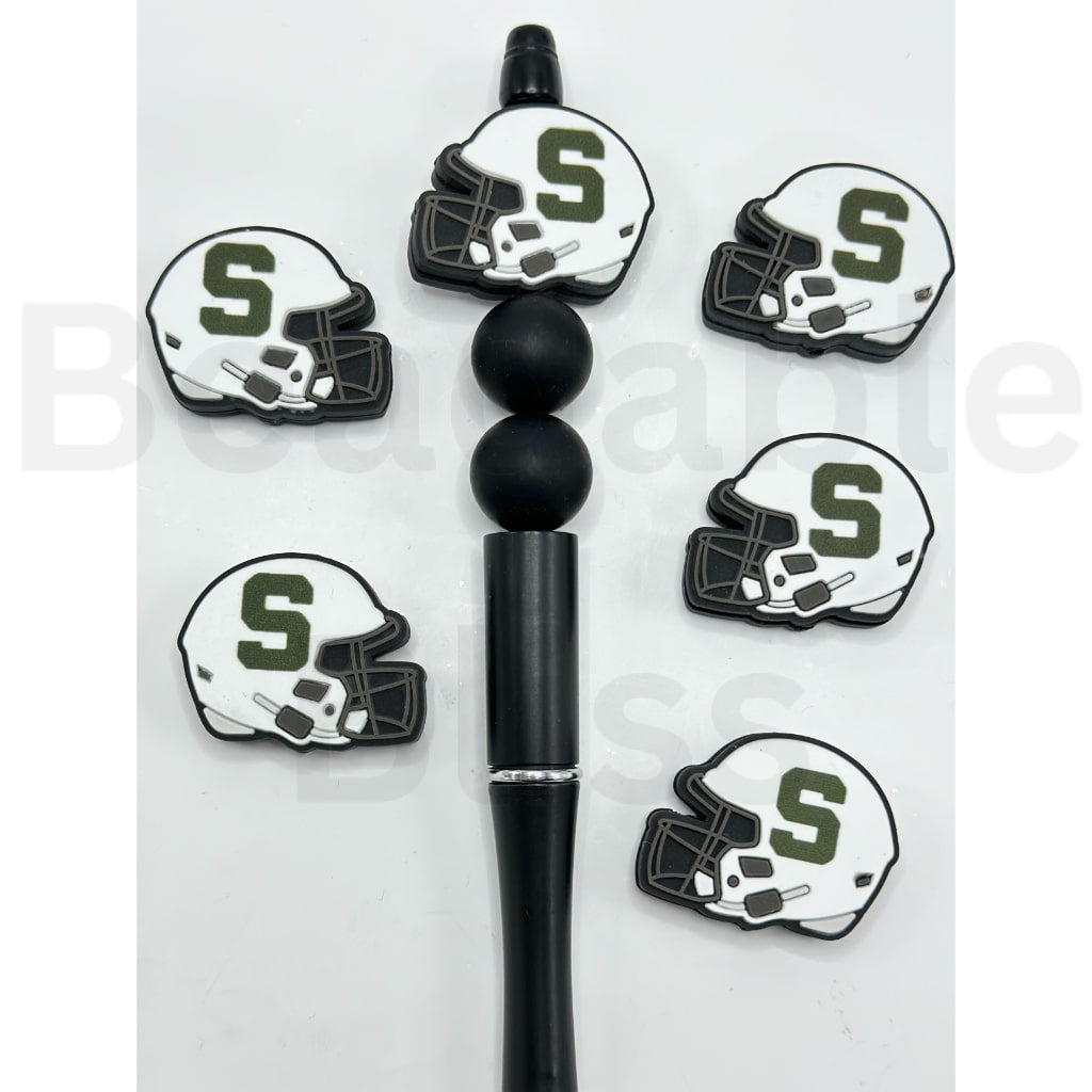 USA America College University Football Teams Michigan State Sparta Helmet Silicone Focal Beads, (This item will be shipped out in around 6 days after you ordered)