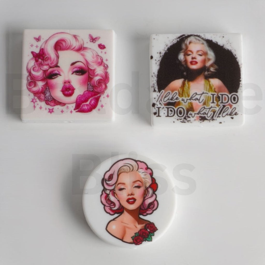 USA America Famous Actress Marily Monro Silicone Focal Beads, Random Mix