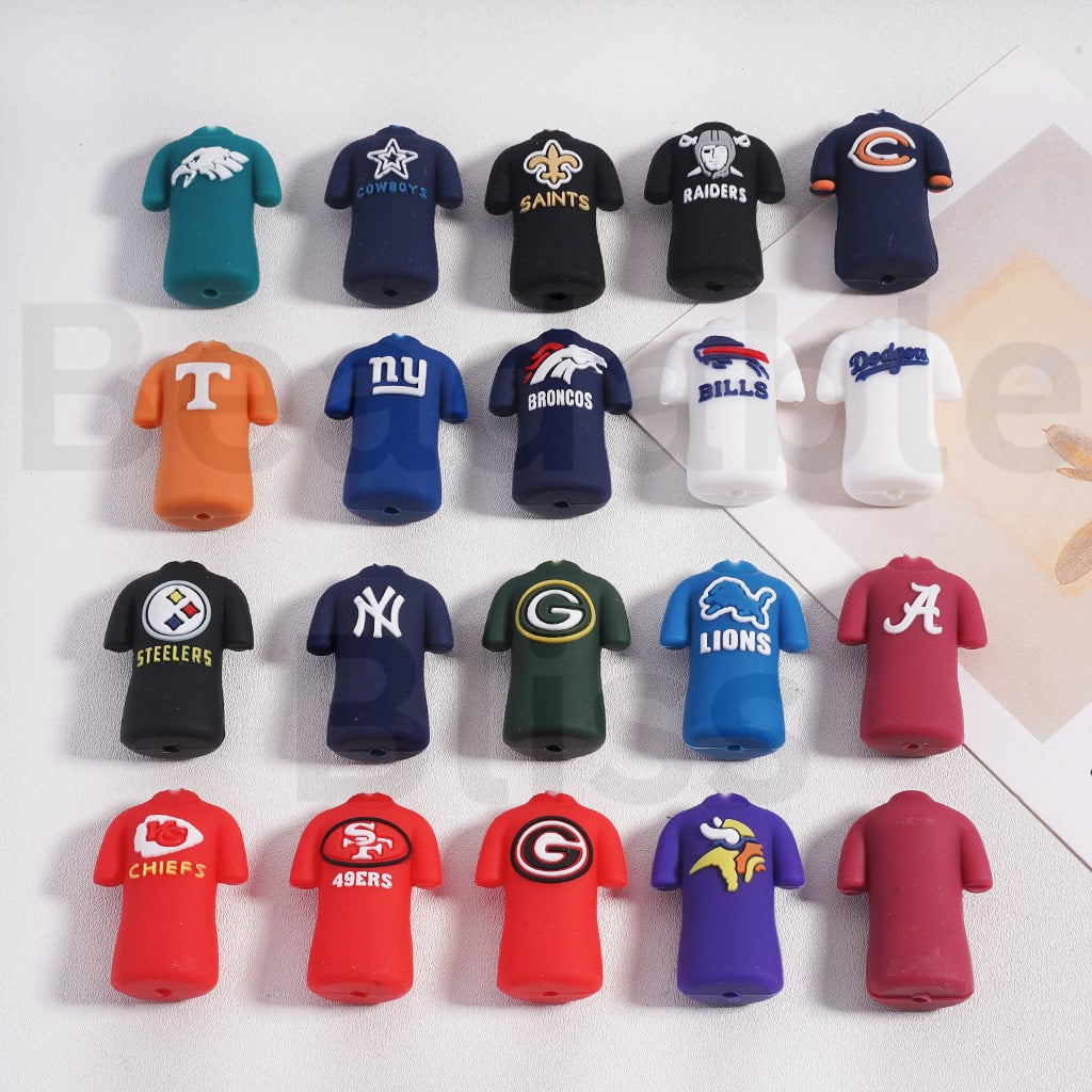 USA America Football Team Shirt Jersey Uniform Kansas Chie Lone Star Fighters Golden Gate Gridiron Denver Football NOLA Football Bear Team Vegas Football Blue Team Buffalo Football Packer Team Red College Team Silicone Focal Beads