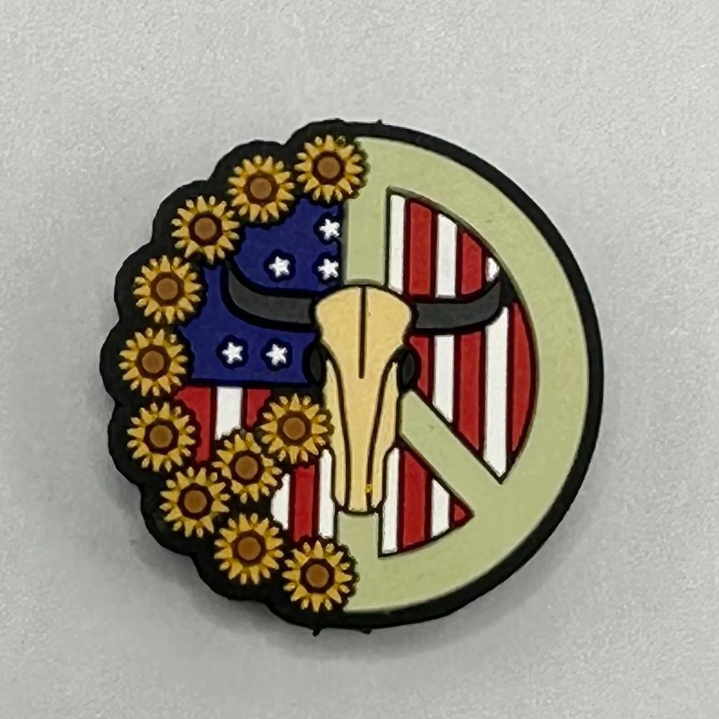 USA Flag US Buffalo Sunflower Peace Sign Round Skeleton Silicone Focal Beads
