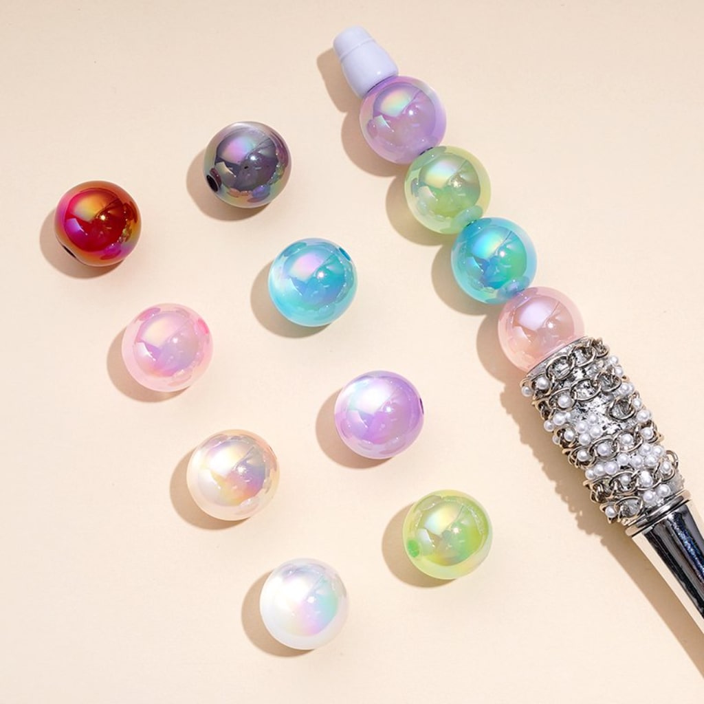 UV Coating Cat Eye Translucent Colorful Round Acrylic Beads, 14MM, Random Mix