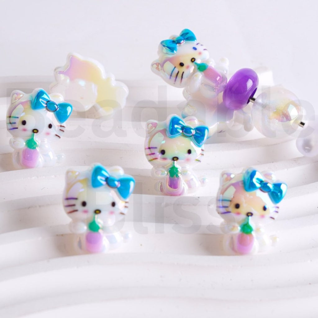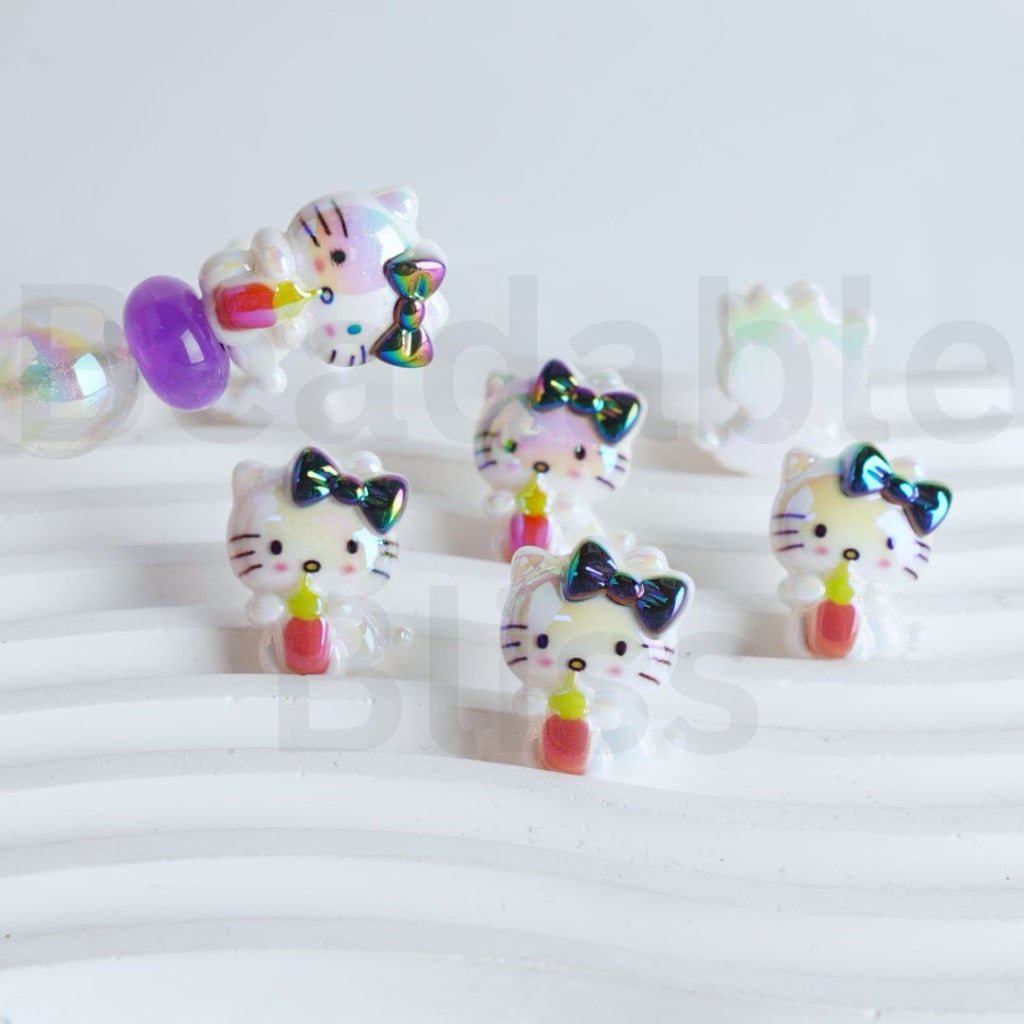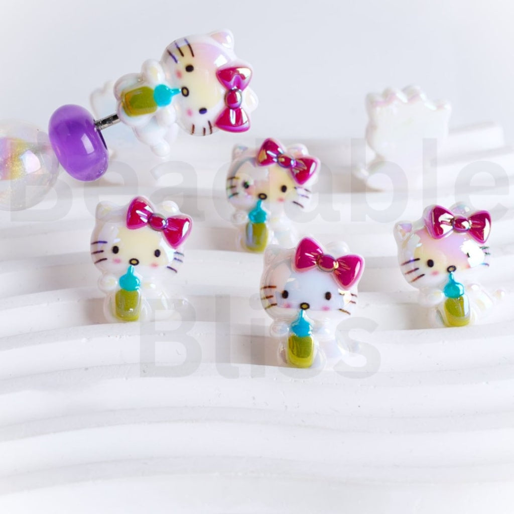 UV Coating Cute HK Kitten Holds a Bottle Sanri Acrylic Beads, Around 20*25MM, Please Read the Description |