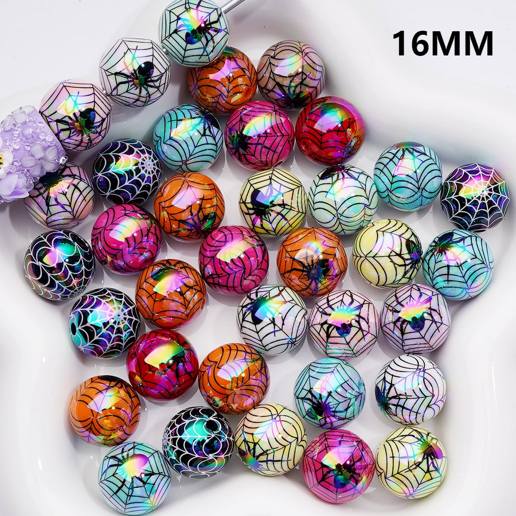 UV Coating Halloween Spider Web Round Acrylic Beads,16MM (Single Color is available for 200pcs(Whole Bag))