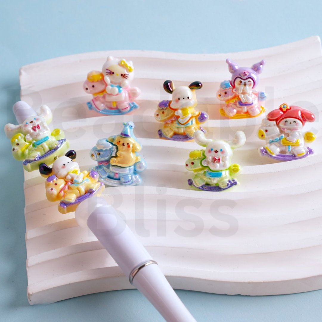 UV Coating Shiny Cute Sanri Family Cartoon Acrylic Beads, Around 23*23MM, Random Mix