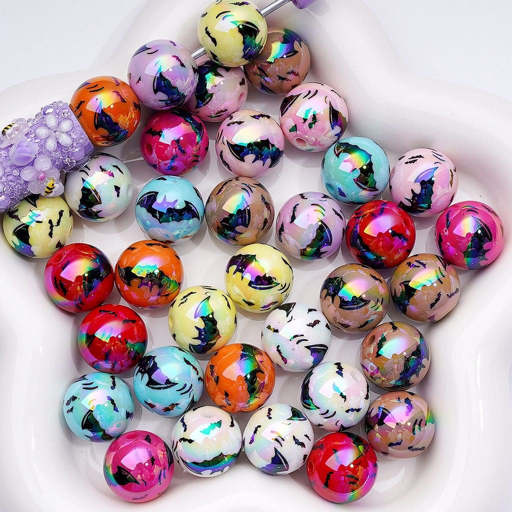 UV Coating Solid Color Halloween Bat Round Acrylic Beads,16MM, Random Mix