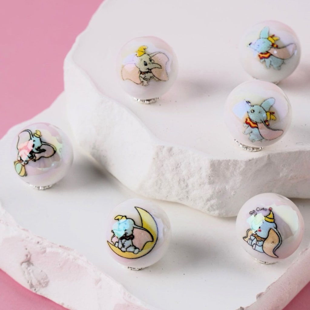 UV Finish Cute Little Elephant Dumb White Round Acrylic Beads, 16MM, Random Mix