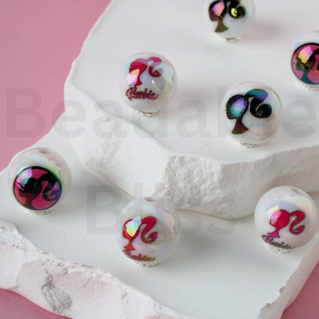 UV Finish Fashion Chic Cutie White Round Acrylic Beads, 16MM, Random Mix