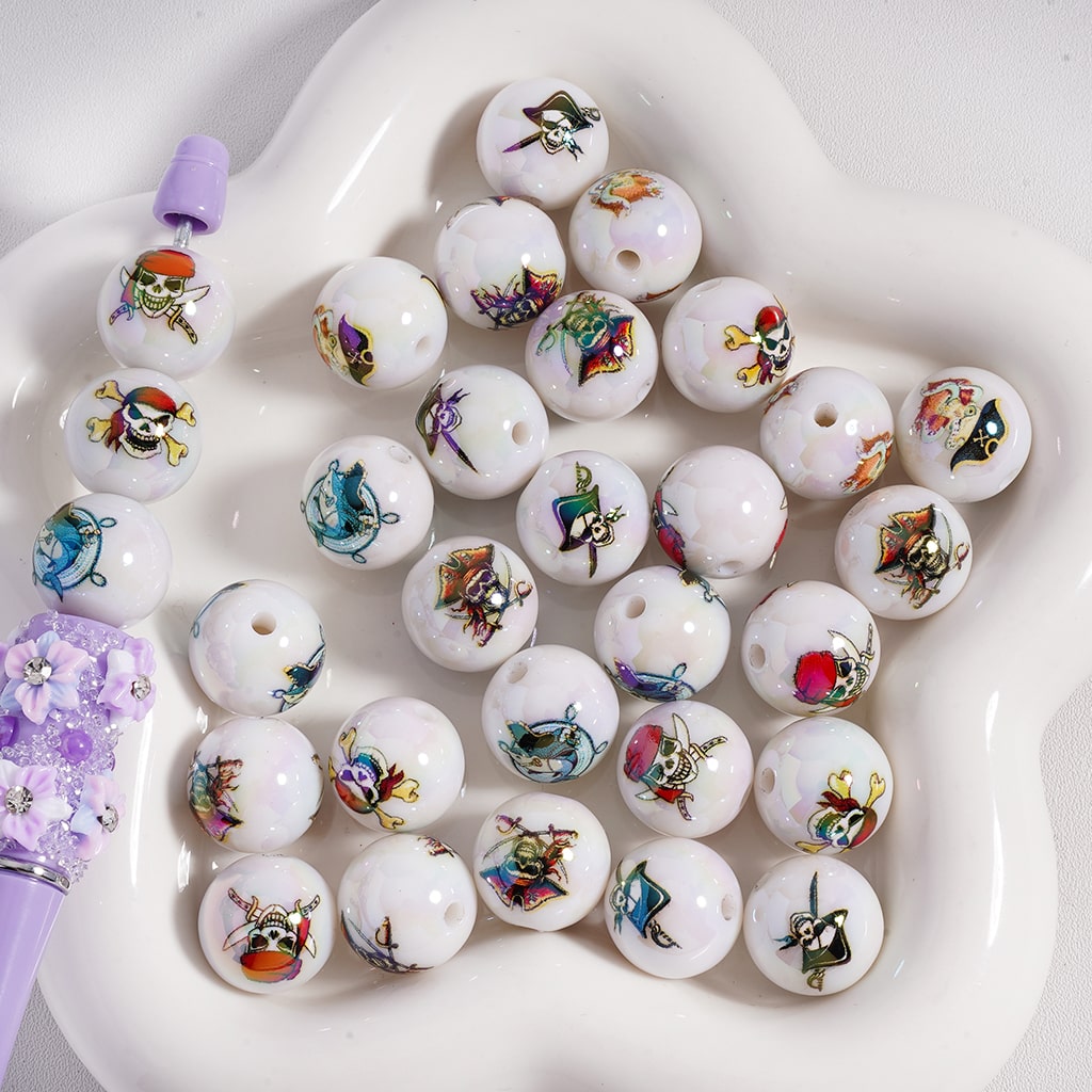 UV Finish Pirates White Round Acrylic Beads, 16MM, Random Mix