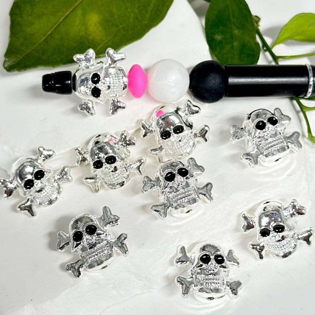 Vivid Silver Alloy Skeleton Bone Trinket Head Spooky Beads, Around 19*23MM