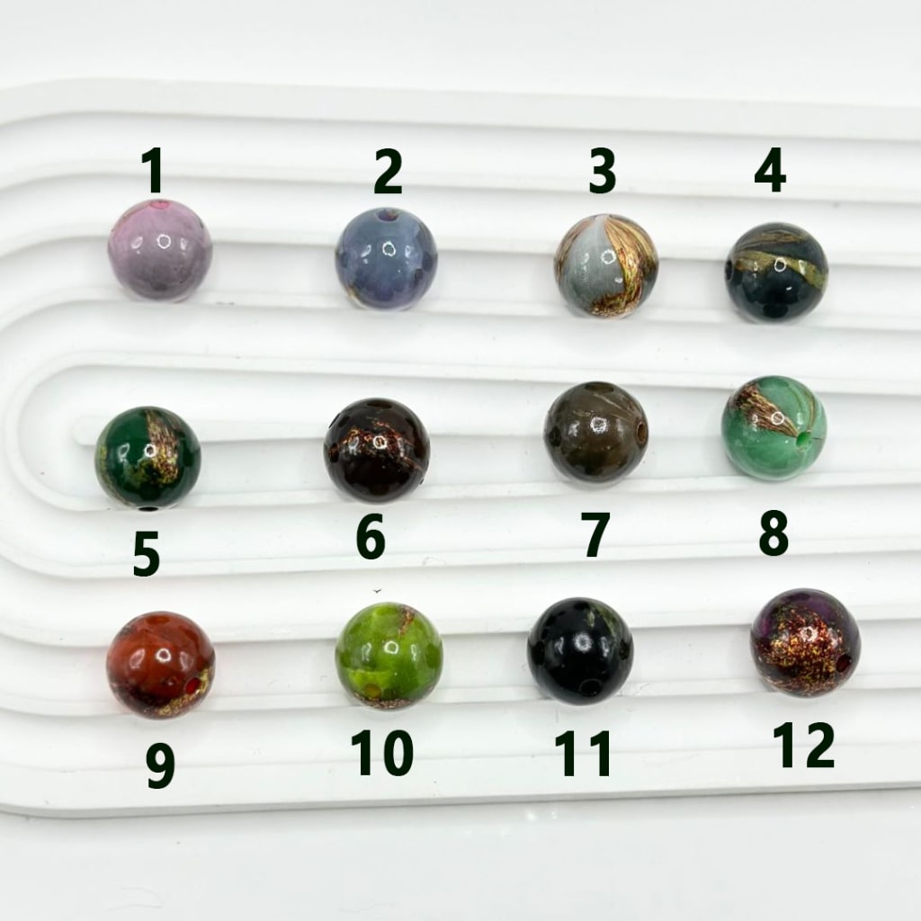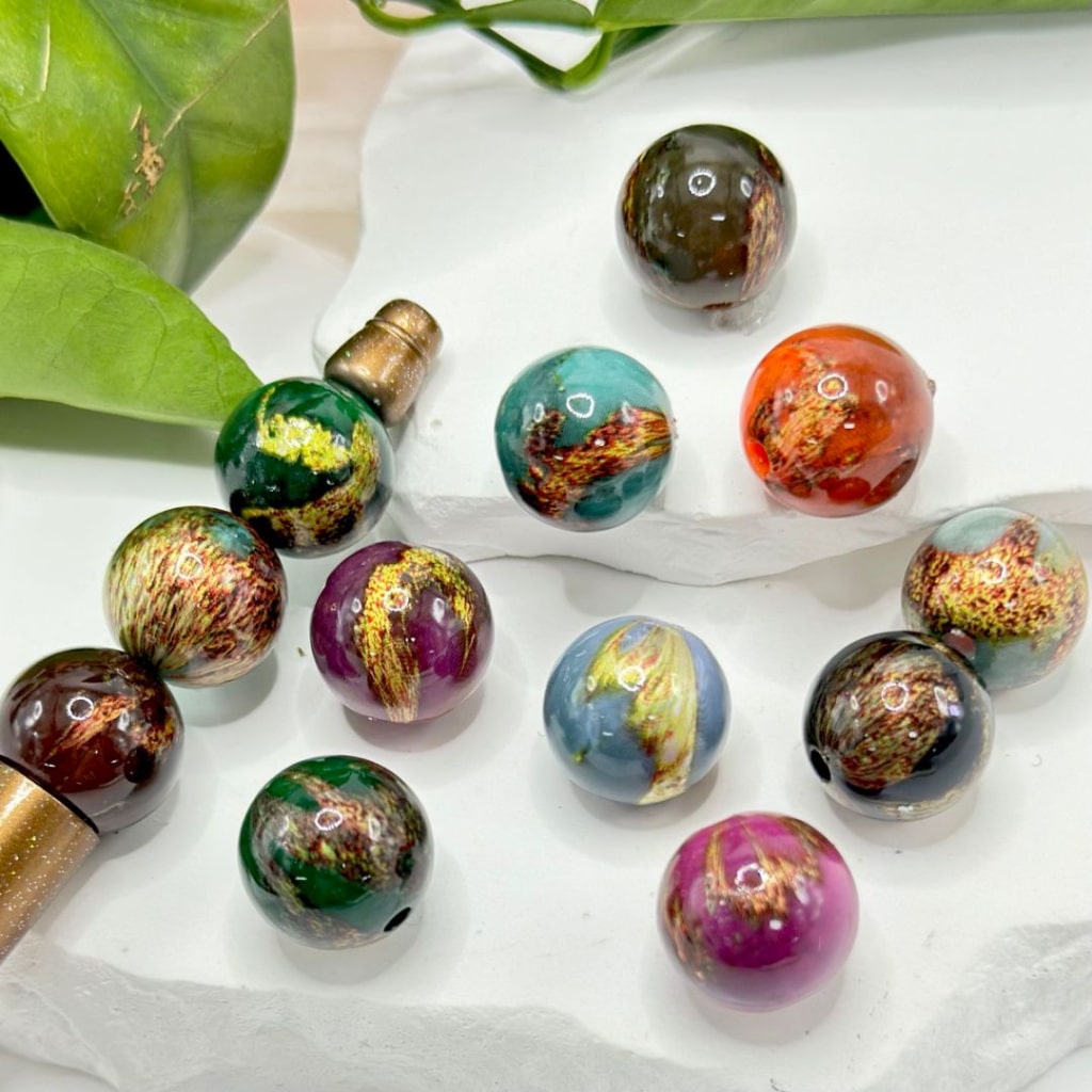 Wood Grain Marble Style Multi-Color Round Acrylic Beads, 16MM